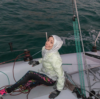 After a day of many adjustments to the rig, halyards and trim lines, we headed out into the sunset. Only main and jib, no gennaker.