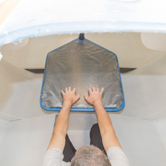 These AEOLOS Rudder bearings brought some unexpected tasks ... the bearing quality which we got here in the UAE was not acceptable ... at least to weak. After a lot of research we decided to develop our own milling machine specialized for our purpose. We have done some tests with mixtures of glass, carbon, graphite, collodial silica, epoxy, etc. Finally we ended with undirectional carbon/gaphite bearings. Incredible strong and nice smooth grooves for the bearing balls. Interior: We designed a removable mast strut so you can easily remove the table and cooker arm to lift the keel safely or reduce the weight during racing.